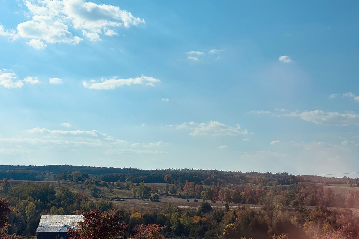 At the Museum of Dufferin in Mulmur, Ontario, sitting on a hill and watching the autumn come.